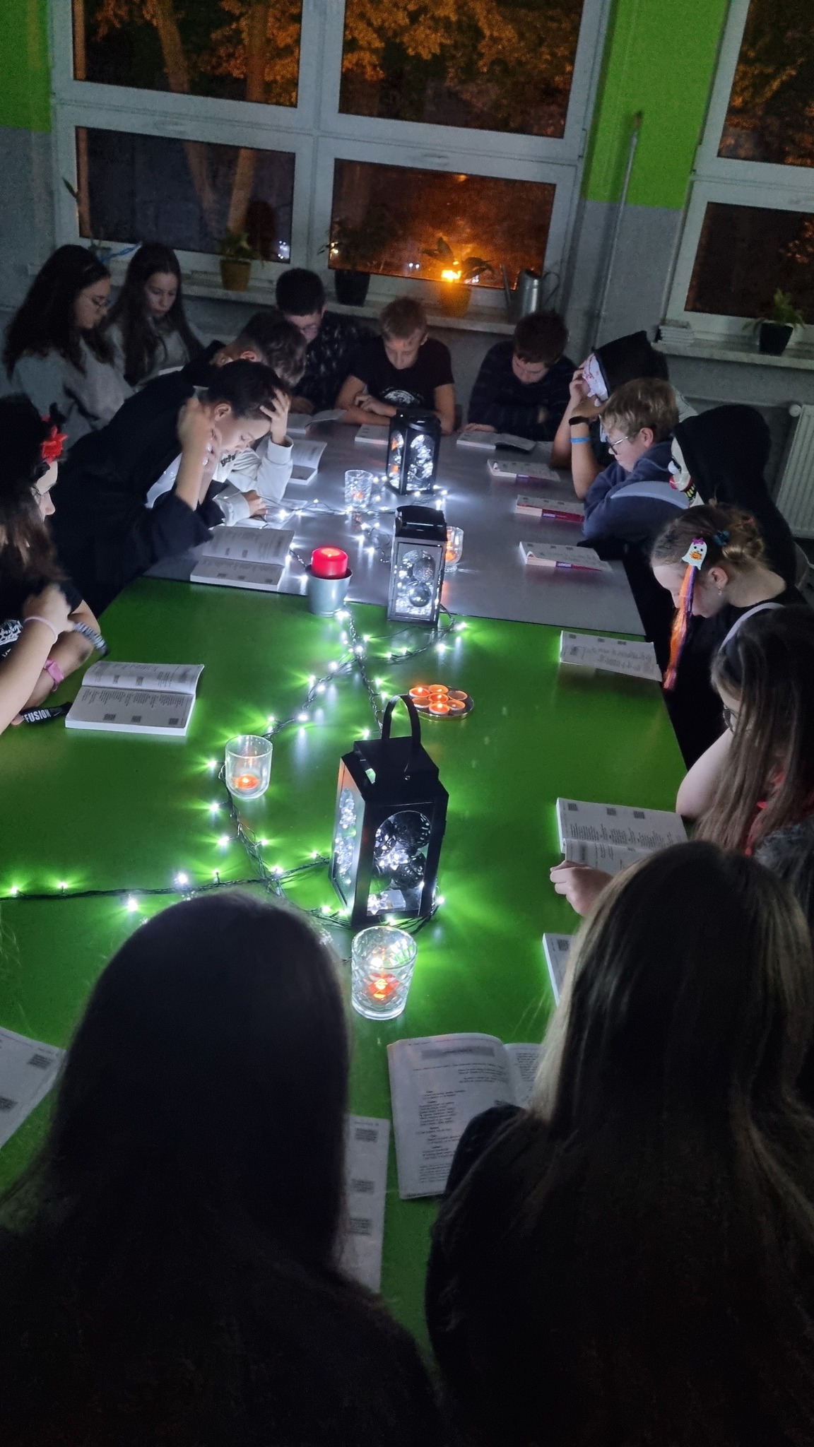 W deszczowy, październikowy wieczór uczniowie klas 6a i 6b spotkali się, by wspólnie przenieść się w świat duchów, tajemnic i poezji Mickiewicza. Było trochę grozy, trochę śmiechu i mnóstwo dobrej energii!
