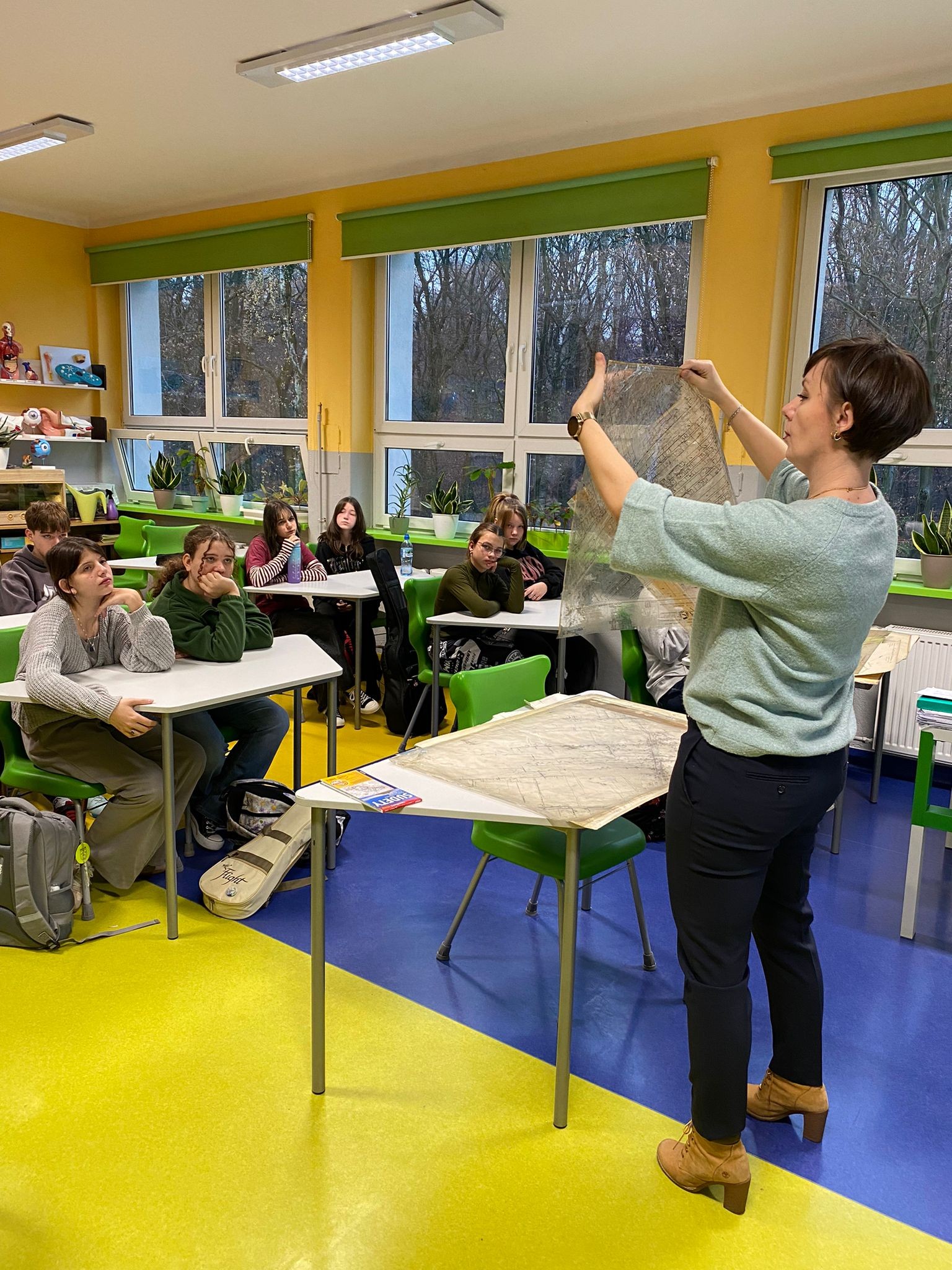Mama naszej uczennicy p. Małgorzata Dybek poprowadziła w kl. VII i VIII zajęcia w ramach doradztwa zawodowego / geografii. Opowiadała o pracy w wydziale geodezji naszego starostwa powiatowego. Pokazała również mapy geodezyjne i sprzęt, którego używają na co dzień. To była świetna lekcja!!! Dziękujemy