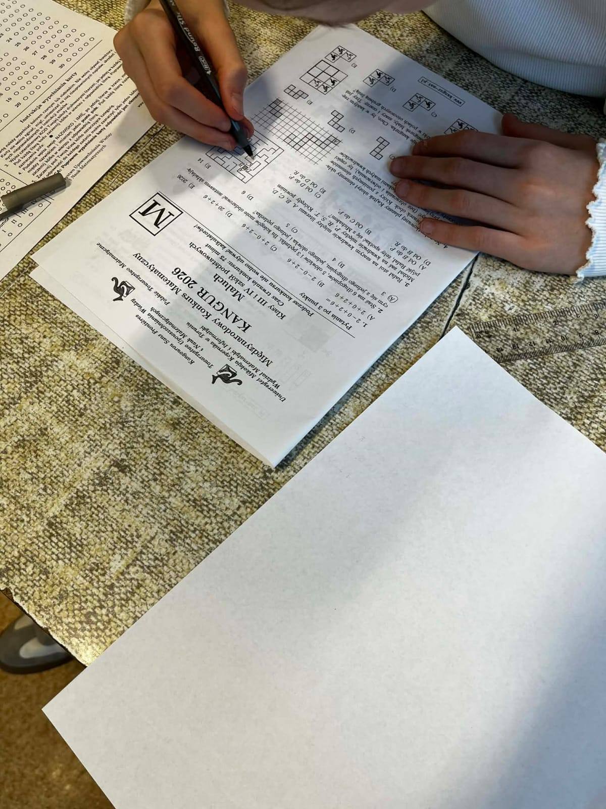 46 uczniów z klas II - VIII zmagało się z zadaniami Międzynarodowego Konkursu Matematycznego KANGUR 2026. To już 35 edycja tego konkursu w Polsce!!! Gratulujemy podjęcia wyzwania i z niecierpliwością czekamy na wyniki
