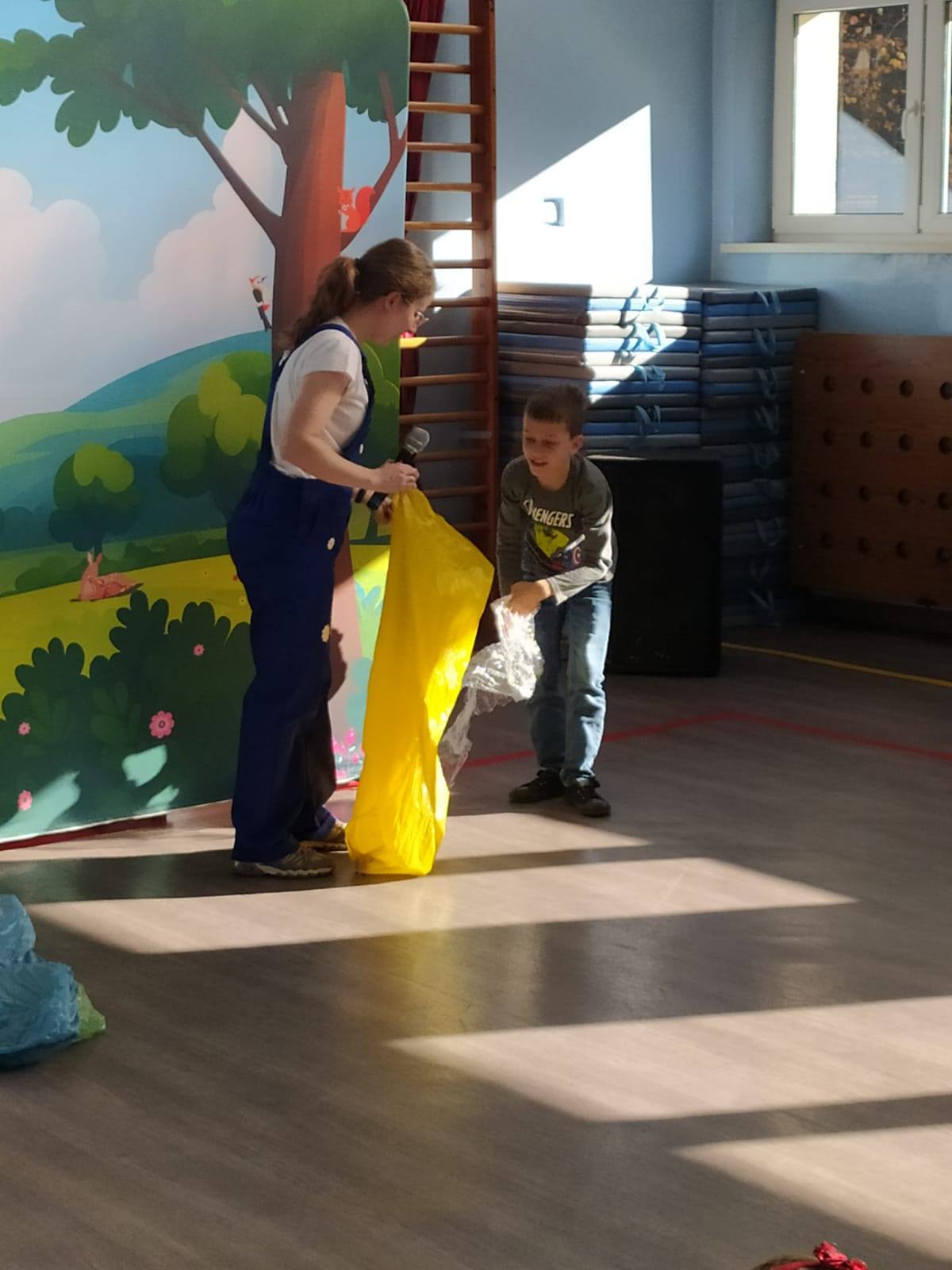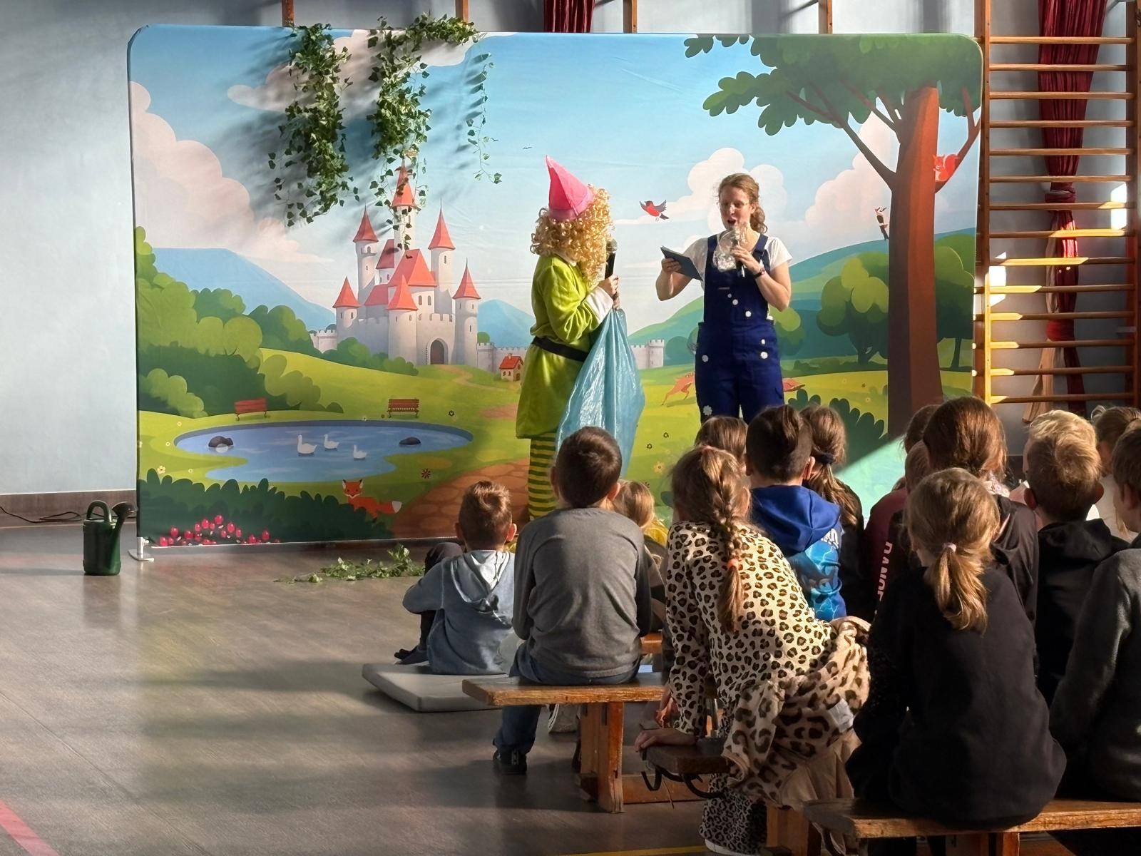 Klasy 1-3 uczestniczyły w przedstawieniu ekologicznym "Klara i niezwykły wynalazek", które porusza problem nadmiernej produkcji śmieci i promuje segregację oraz recykling.