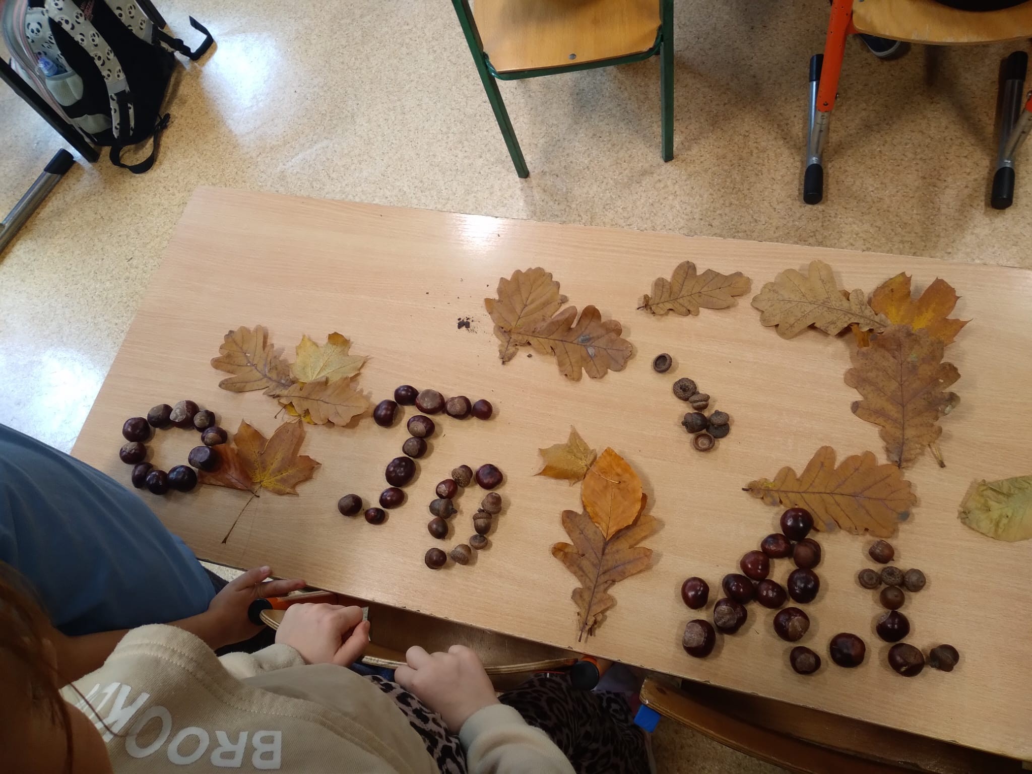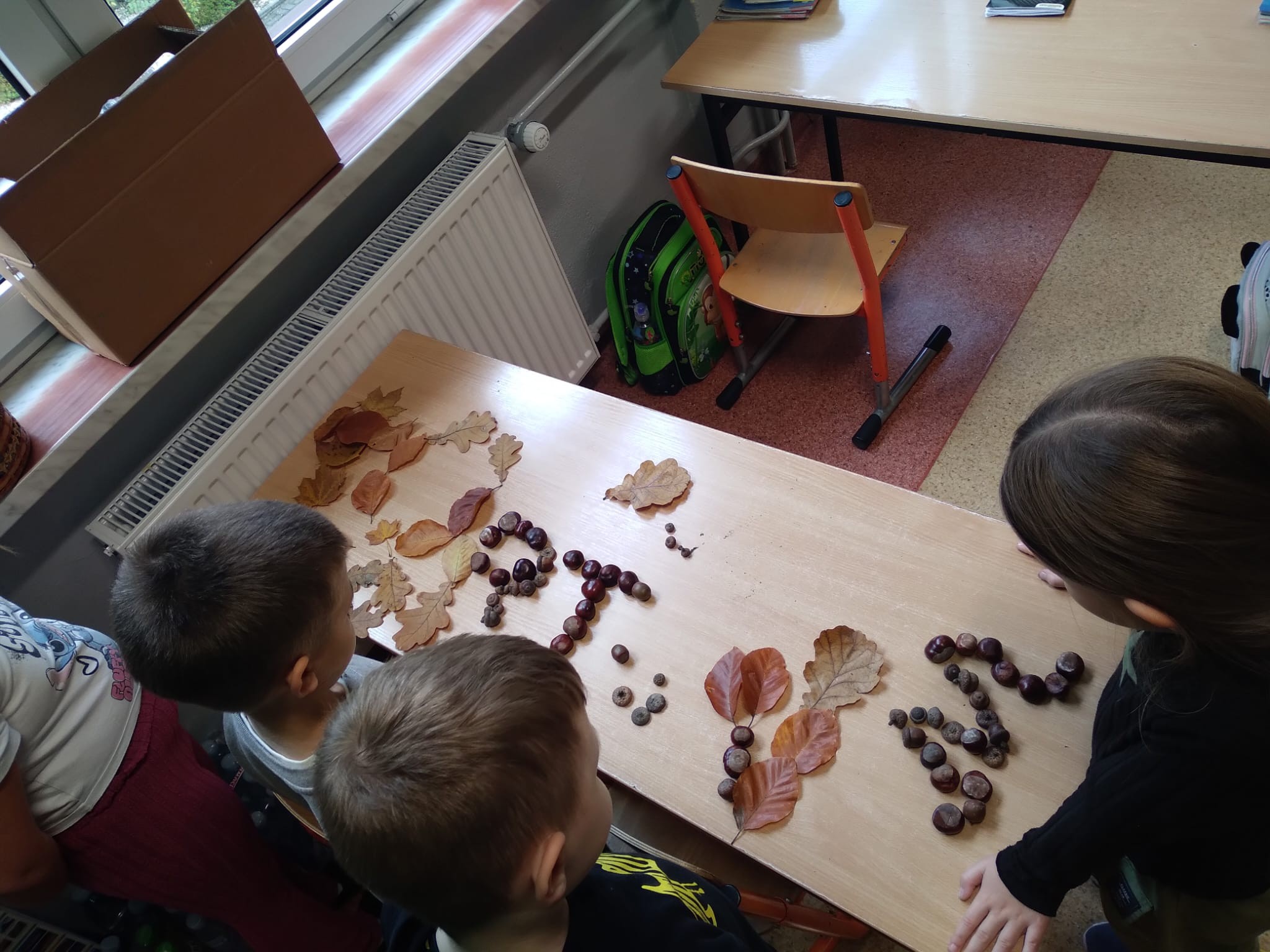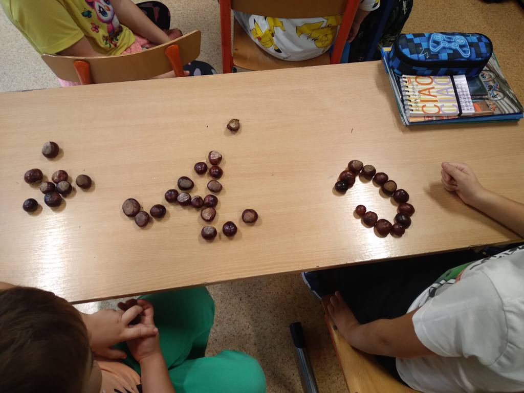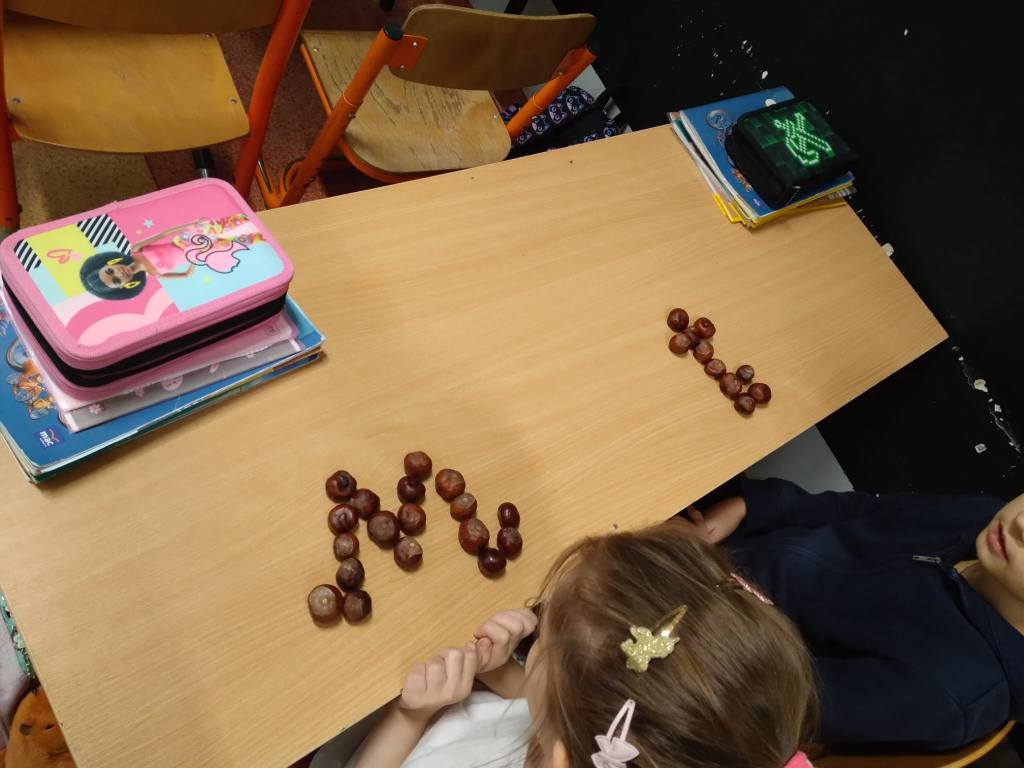 Klasa 1a w ramach Międzynarodowego Projektu Edukacyjnego " Literki w akcji " zrealizowała 1 zadanie - litery z darów jesieni.
