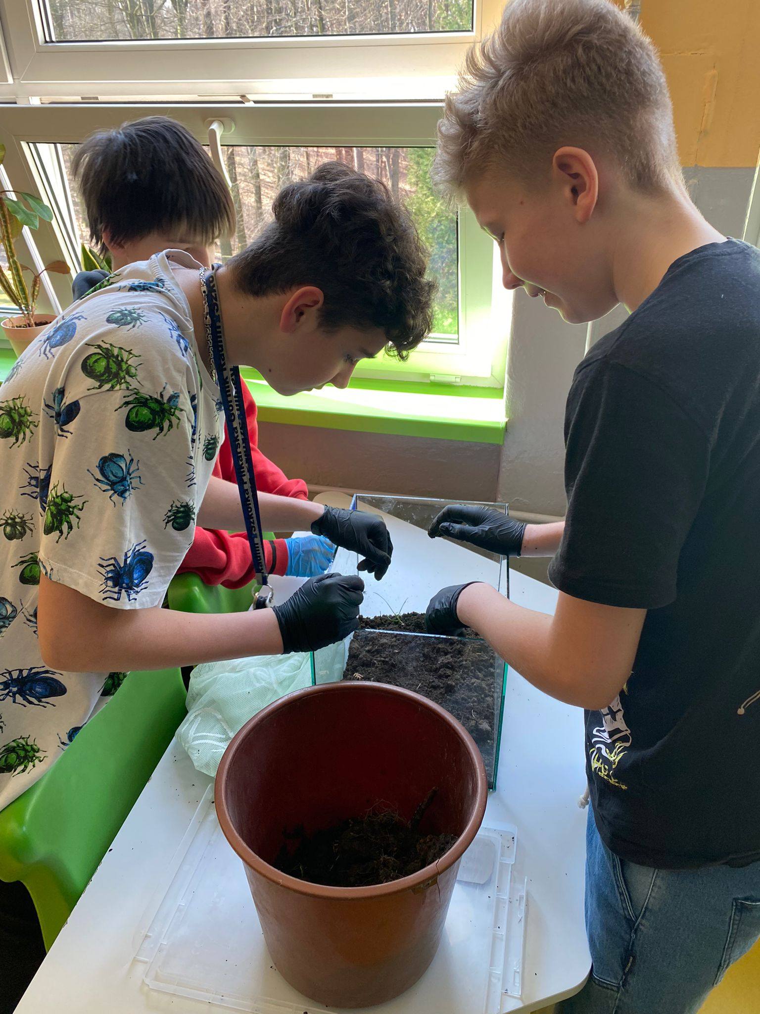 Do naszej pracowni przyrodniczej zawitał nowy gość - Marszczelec pierścieniowy Jest to gatunek płaza beznogiego. Ze względu na liczne szczecinki, często mylony jest ze stonogą. Naturalnie występuje w Ameryce Południowej.