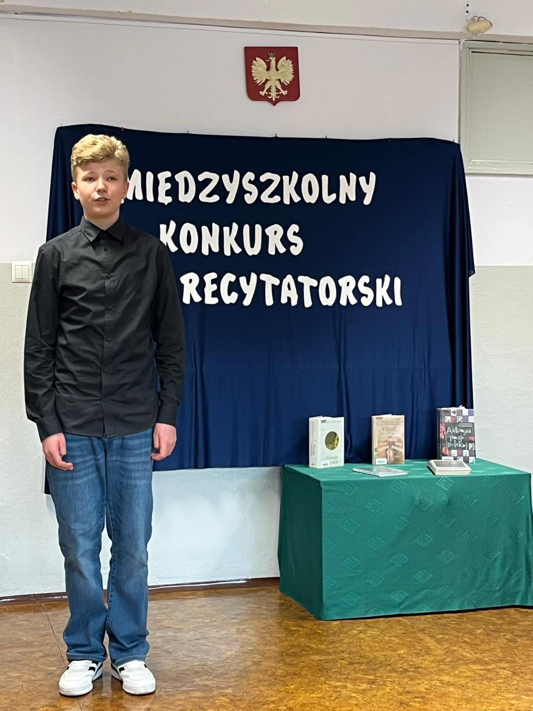 Witold Pendziałek zajął 2. miejsce i weźmie udział w Powiatowym Konkursie Recytatorskim. Już trzymamy kciuki.