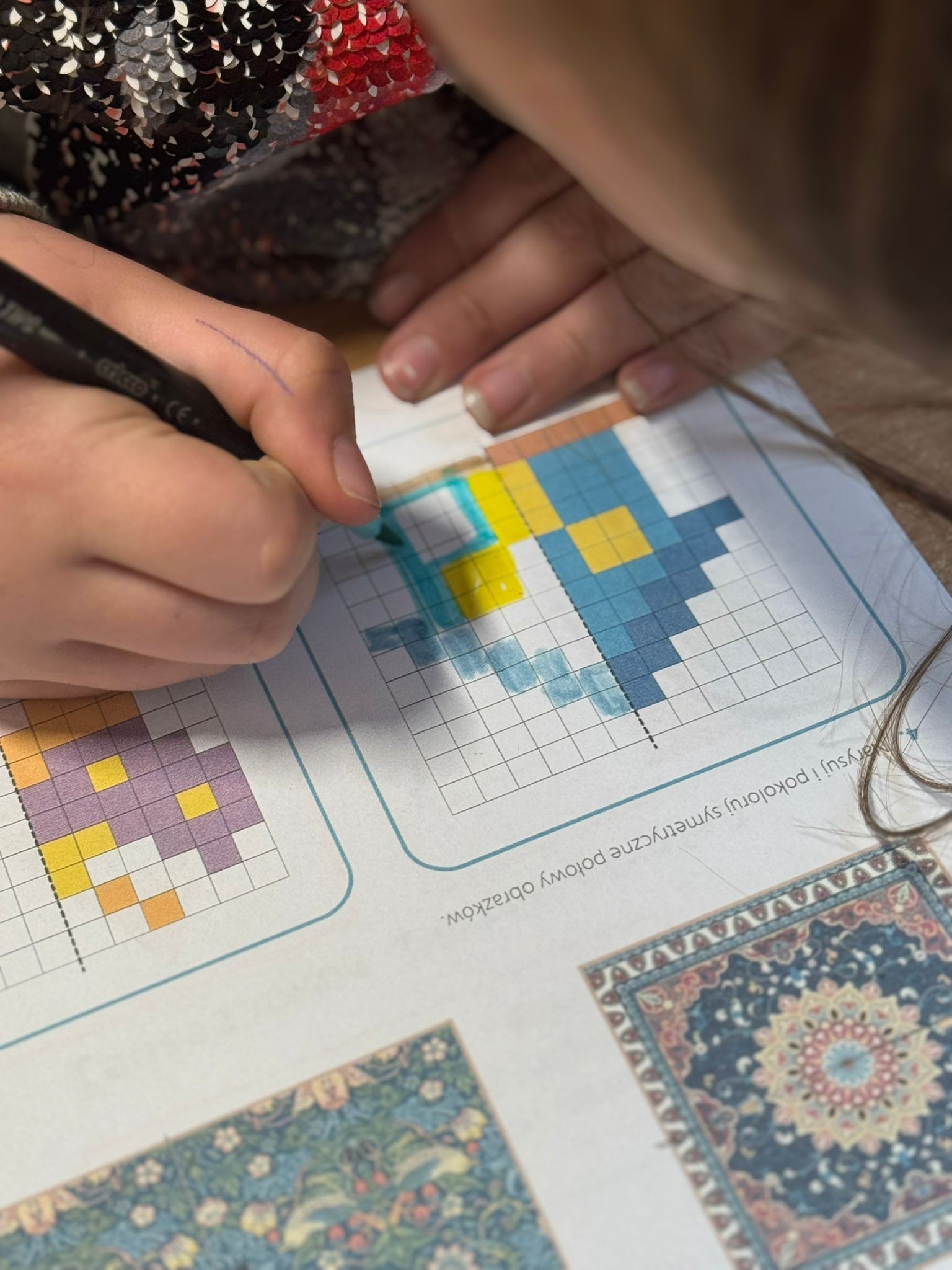 Klasa 2b szukała matematyki w sztuce i… ZNALAZŁA! Wykonała tym samym drugie zadanie z Projektu Edukacyjnego „Natalka i Antek w świecie wielkiej matematyki”.