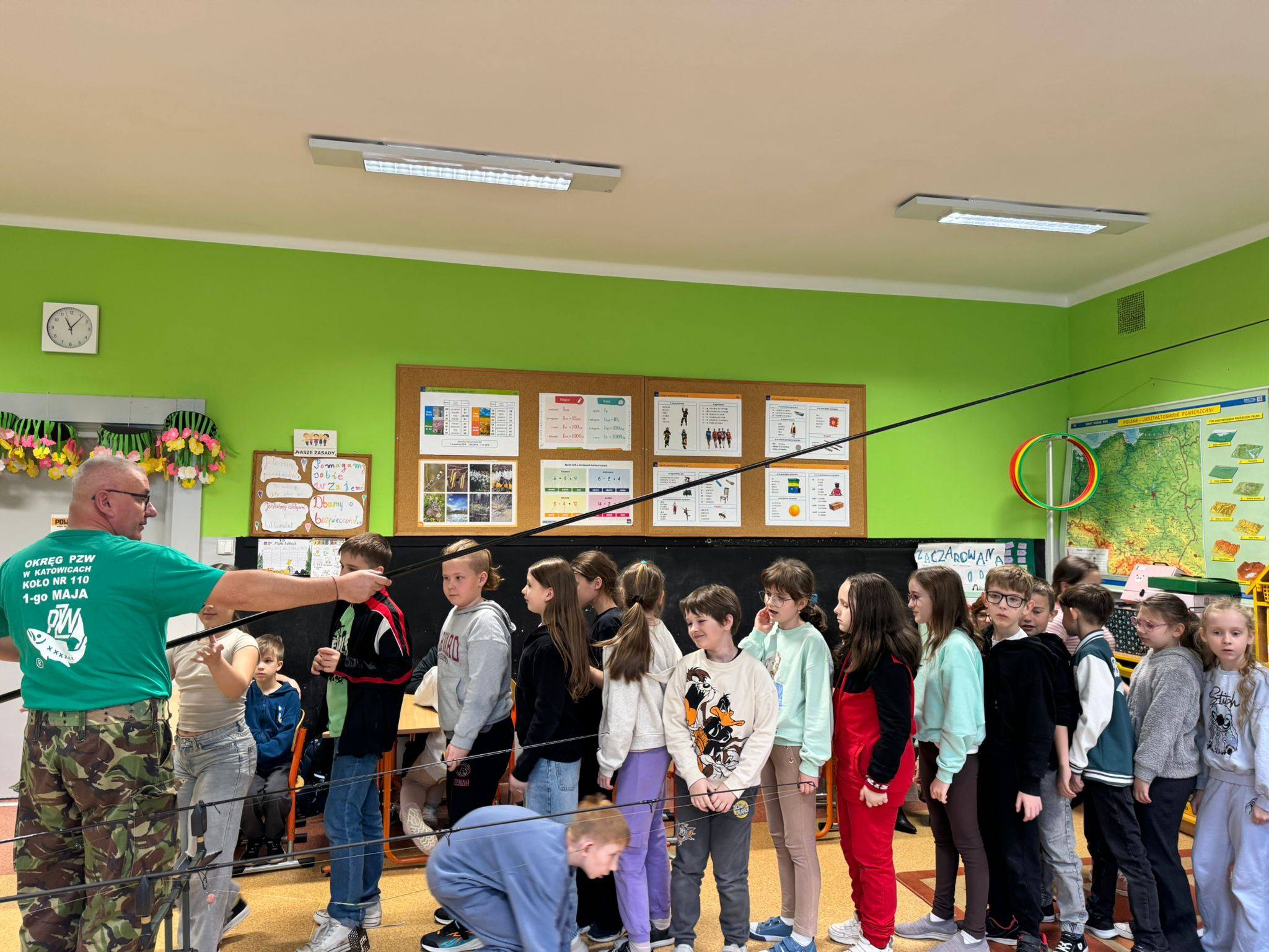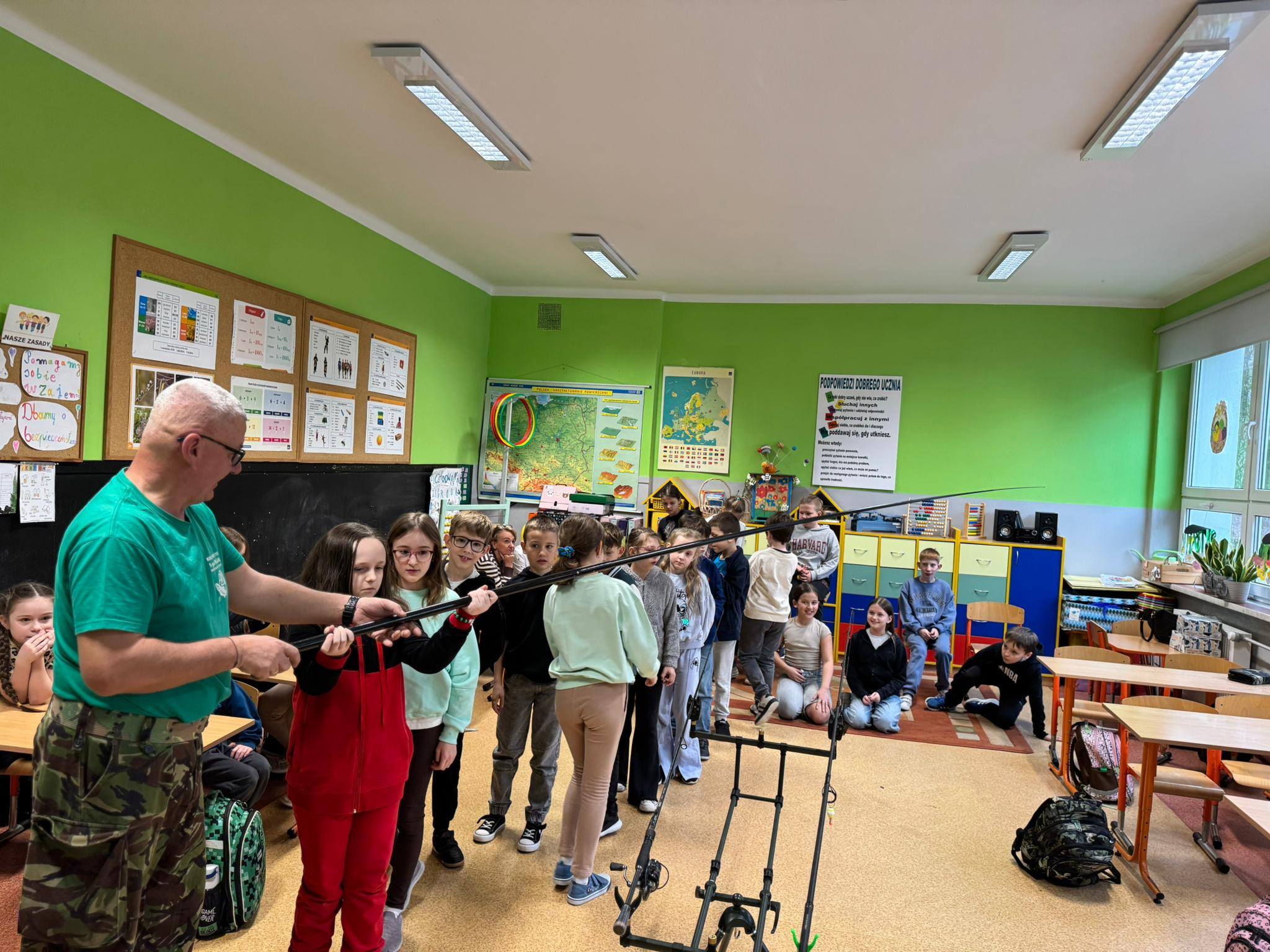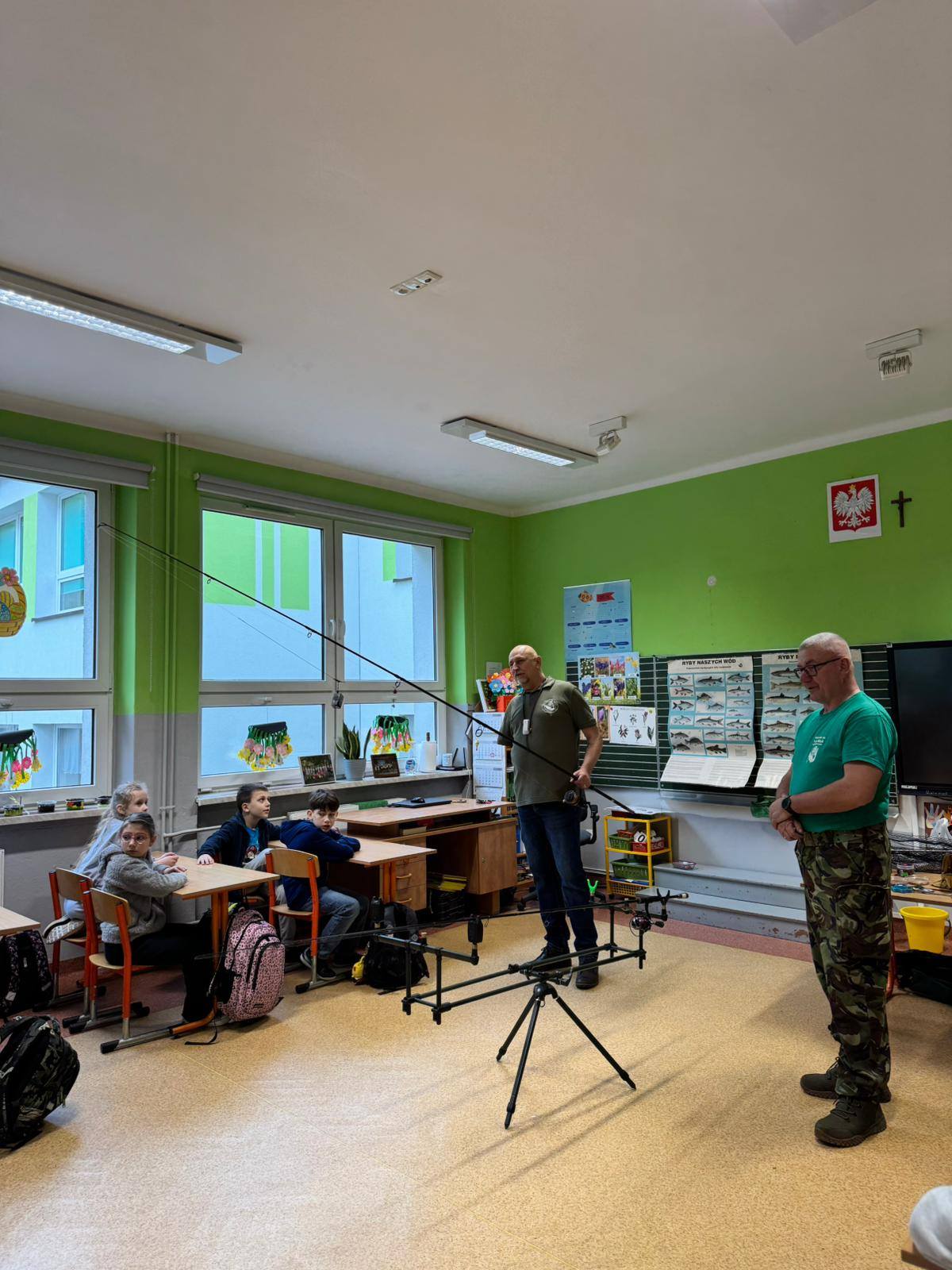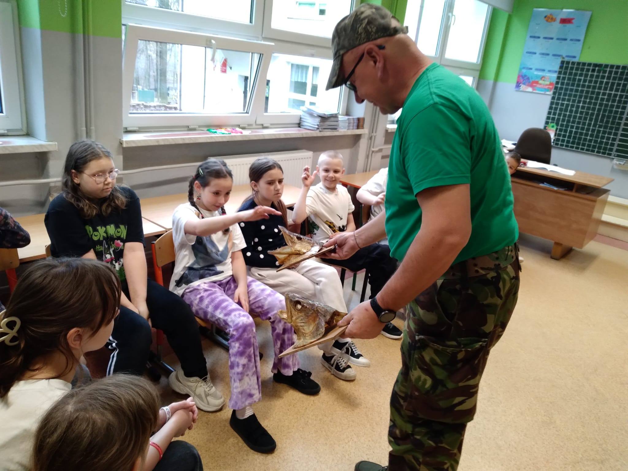 Panowie wędkarze przedstawili uczniom w bardzo ciekawy sposób swoją pasję - dzieci poznały gatunki ryb, zapoznały się ze sprzętem wędkarskim, a także wieloma innymi ciekawostkami! Poruszono także tematy związane z ochroną wód oraz środowiska naturalnego. Dziękujemy bardzo za odwiedziny i poszerzenie wiedzy w tym temacie! W zajęciach brały udział klasy: 2b, 3a i 3b.
