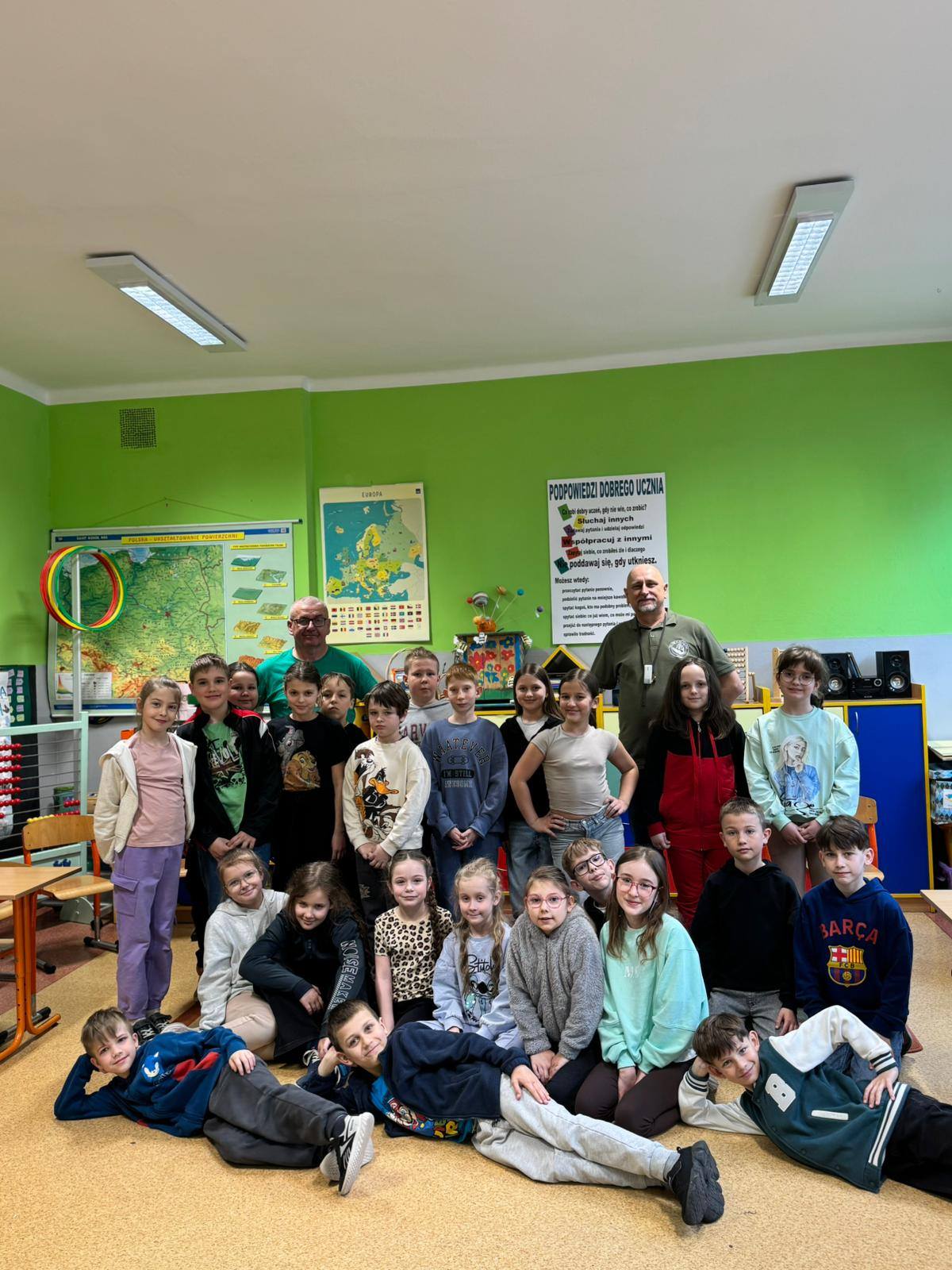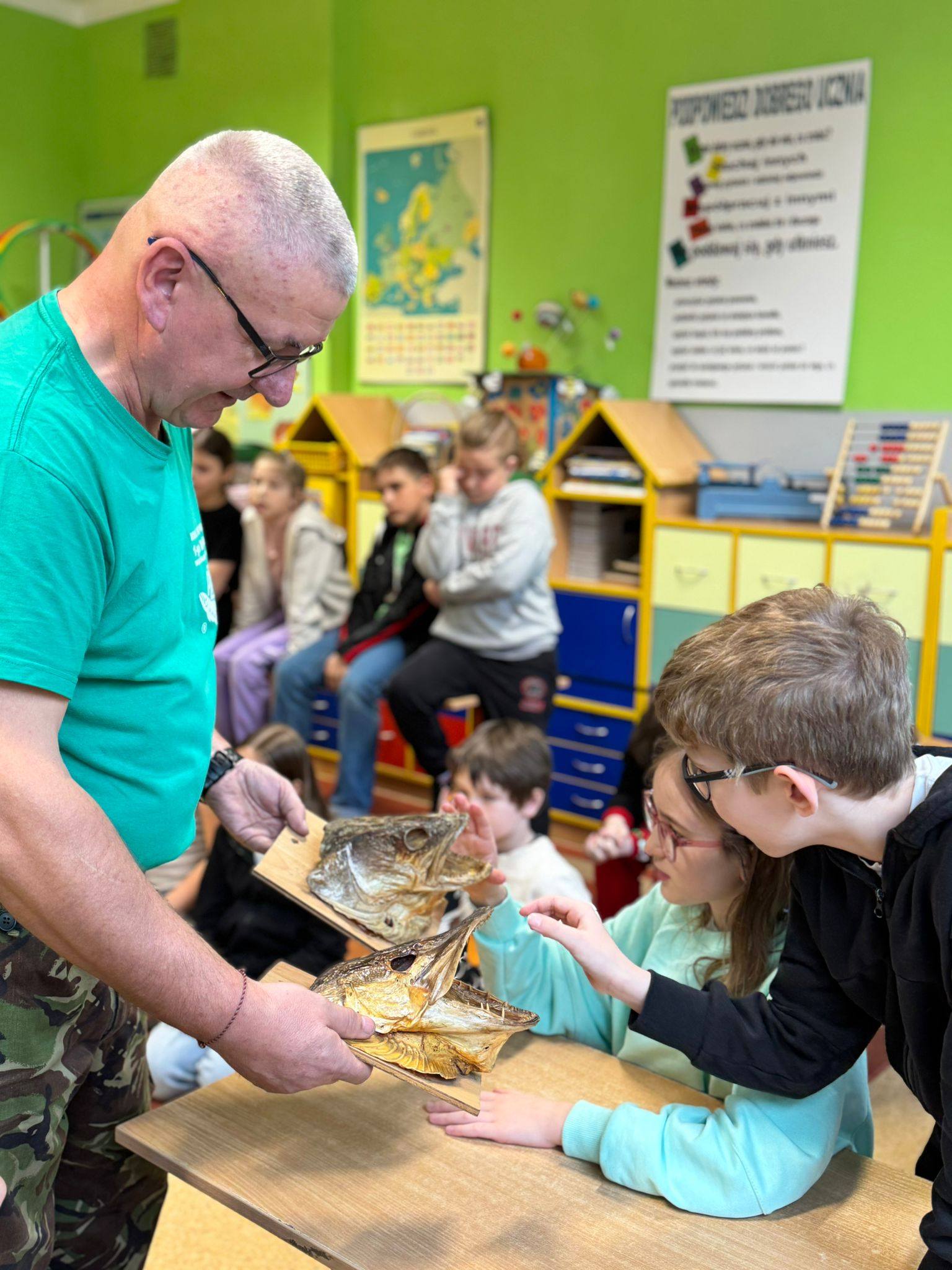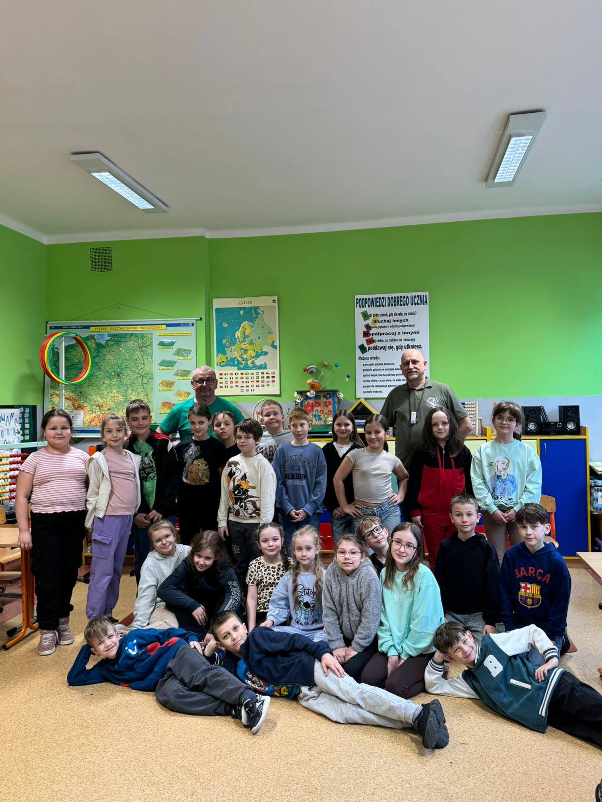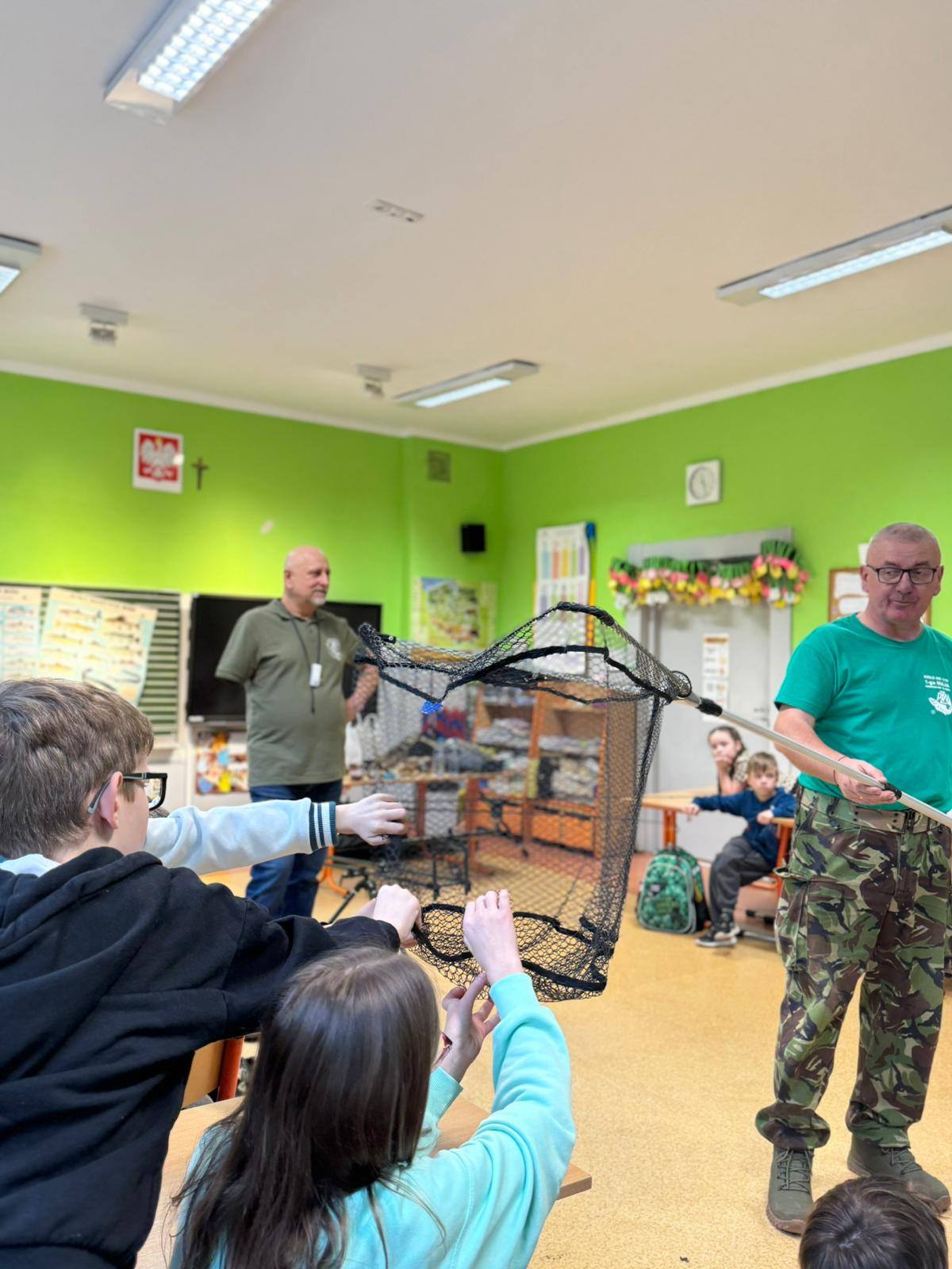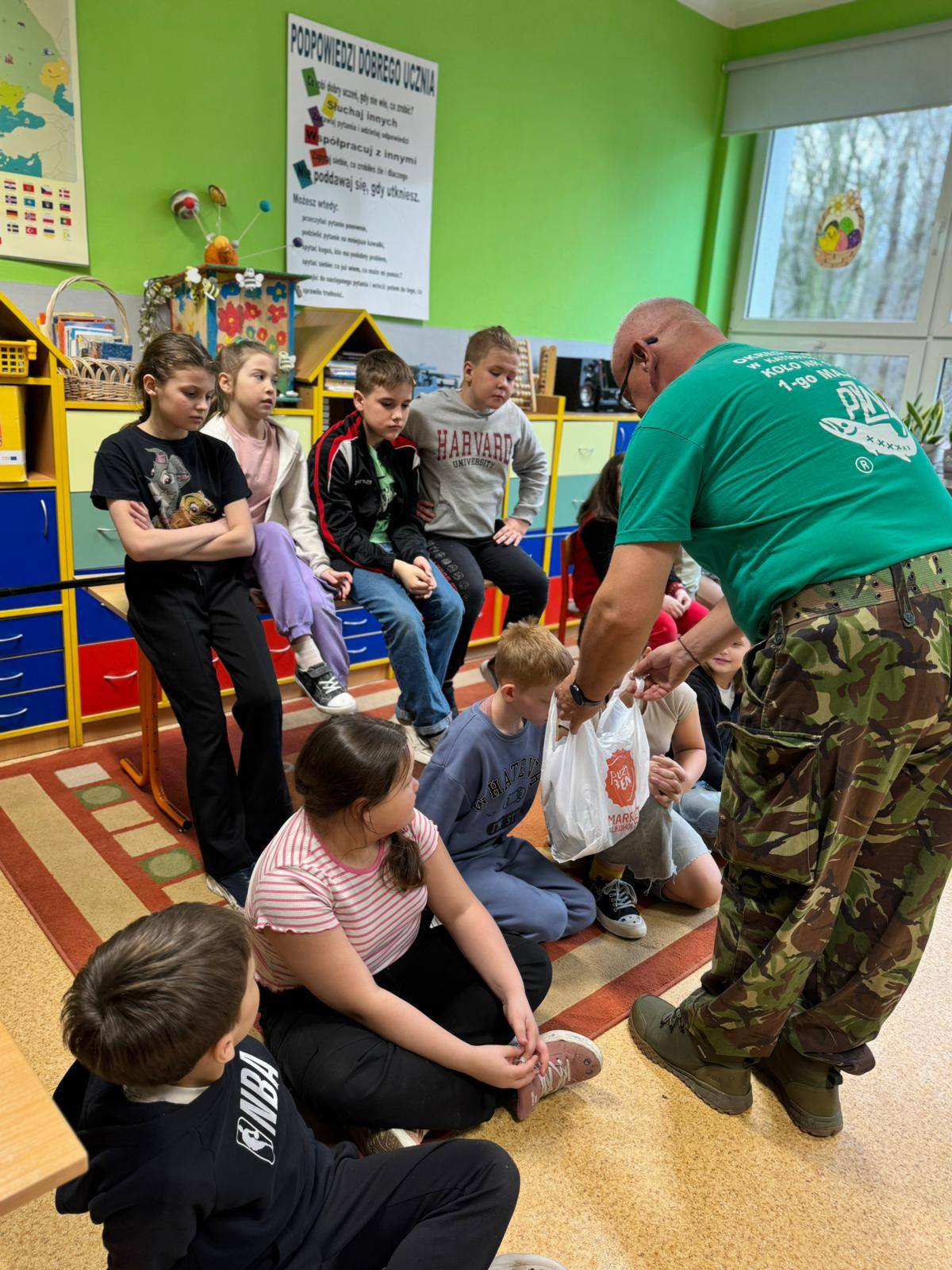 Panowie wędkarze przedstawili uczniom w bardzo ciekawy sposób swoją pasję - dzieci poznały gatunki ryb, zapoznały się ze sprzętem wędkarskim, a także wieloma innymi ciekawostkami! Poruszono także tematy związane z ochroną wód oraz środowiska naturalnego. Dziękujemy bardzo za odwiedziny i poszerzenie wiedzy w tym temacie! W zajęciach brały udział klasy: 2b, 3a i 3b.