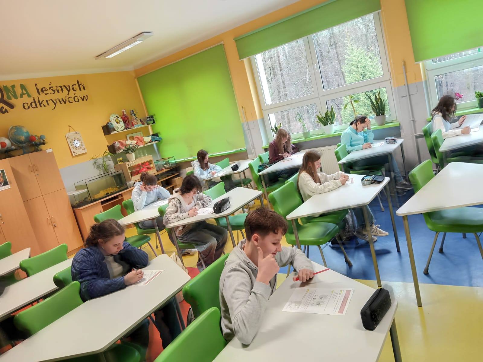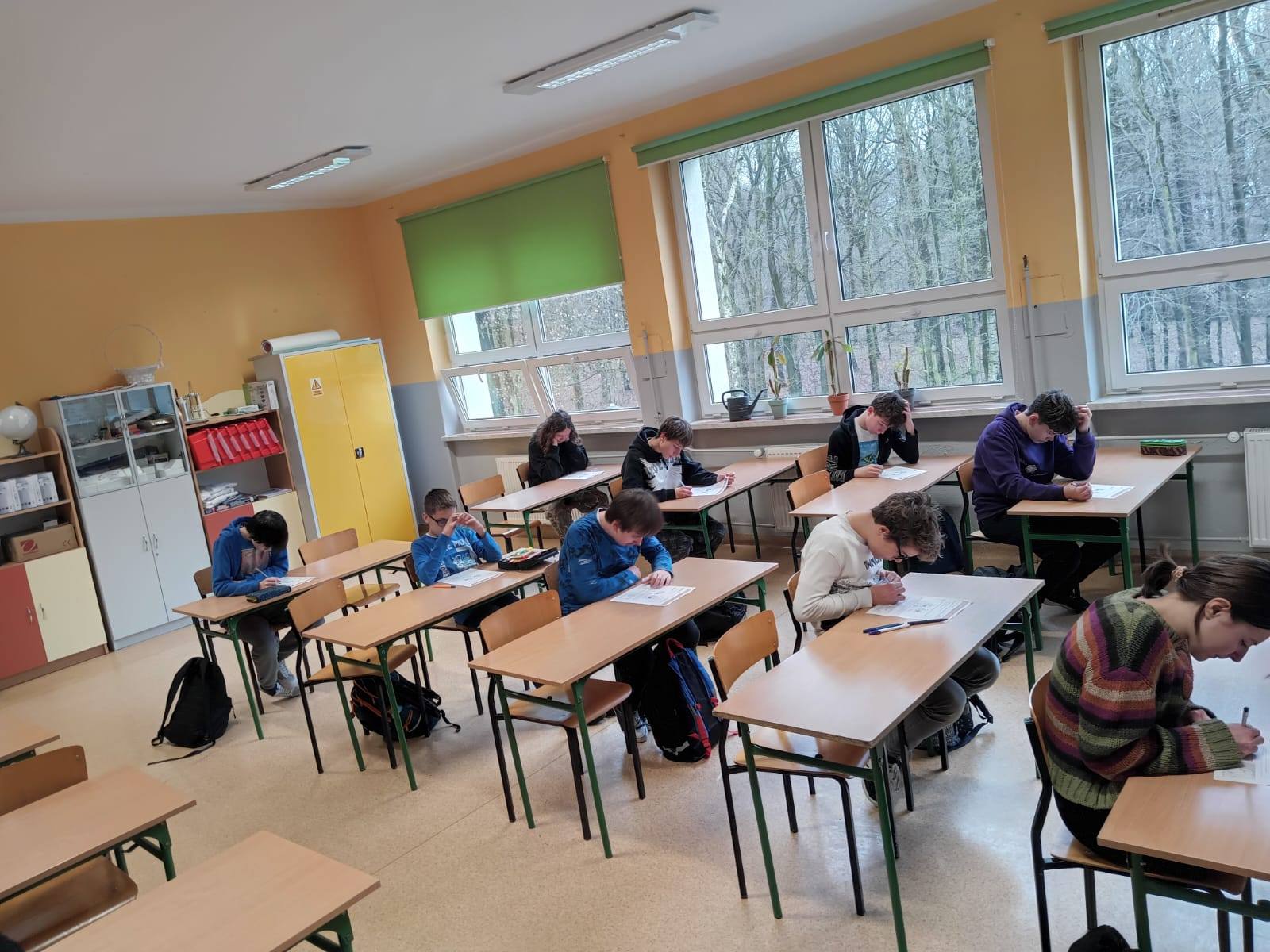 27 uczniów z kl. VII-VIII brało udział w szkolnych eliminacjach Powiatowego Konkursu Interdyscyplinarnego "Starcie tytanów, czyli przedmioty ścisłe kontra uczniowie". Uczniowie zmagali się z zadaniami z matematyki, fizyki, geografii, biologii oraz chemii. Najlepsze okazały się: