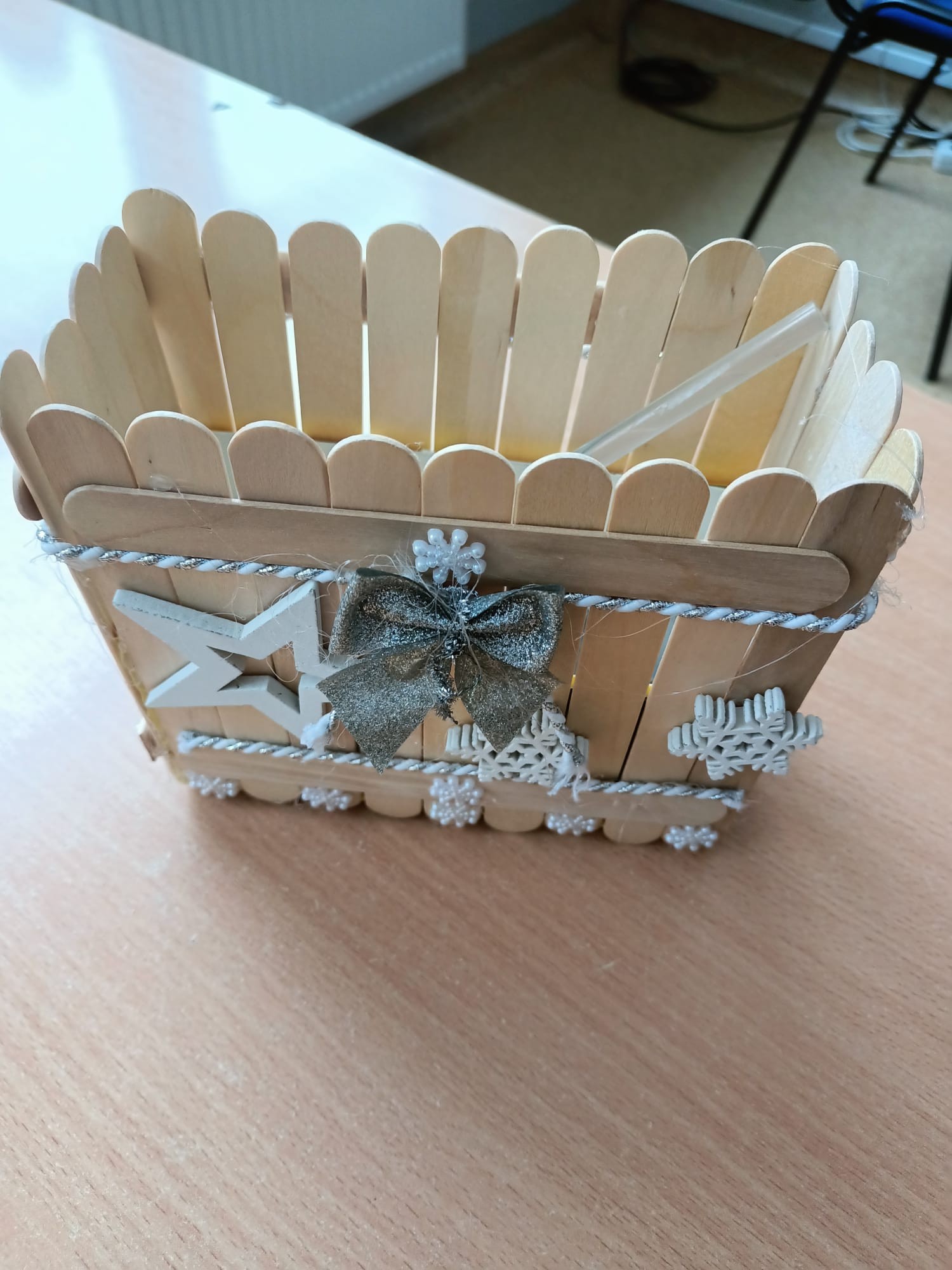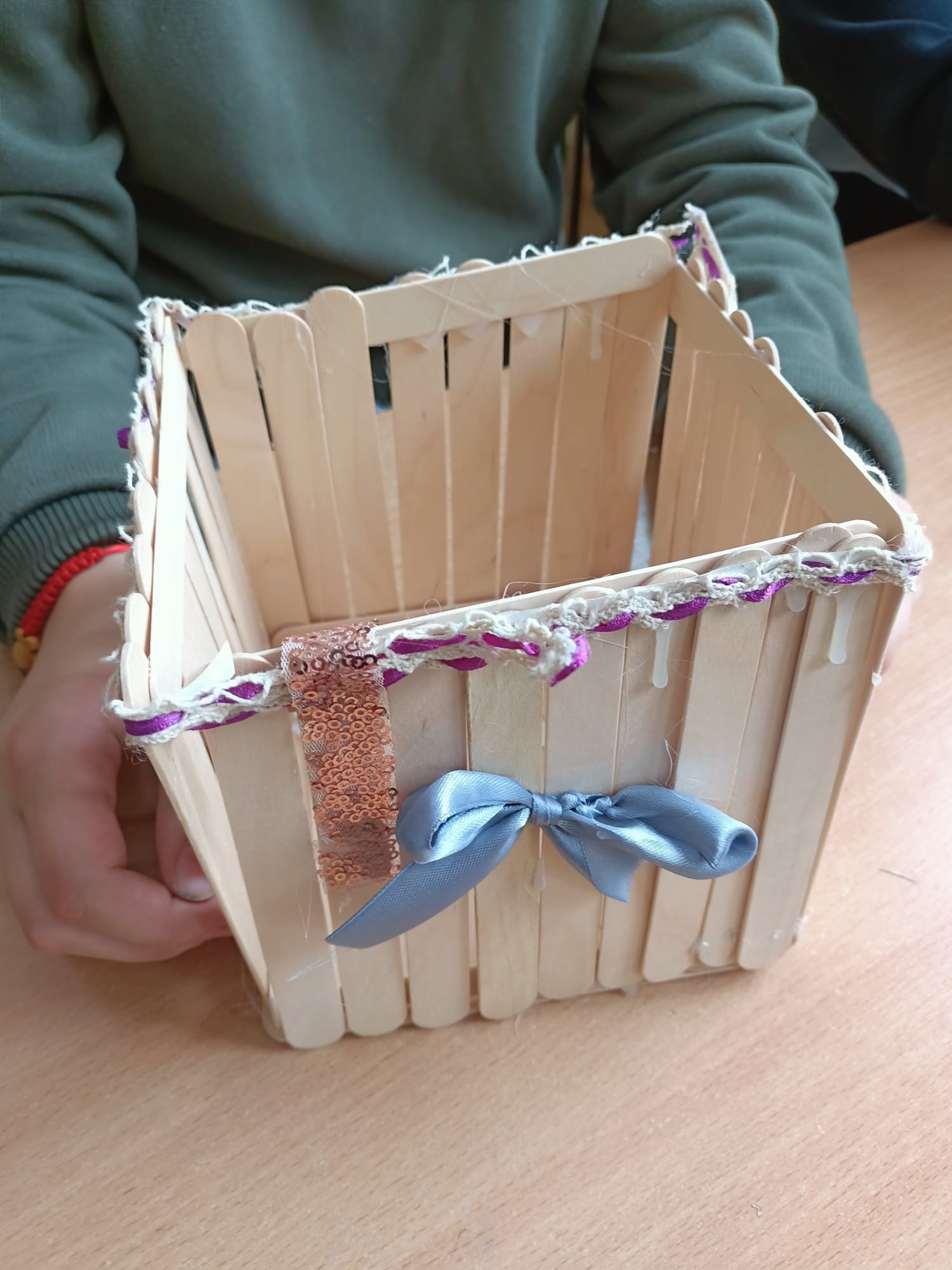 Prace z patyczków logopedycznych wykonane przez uczniów klasy 5a i 5 b na lekcji techniki.