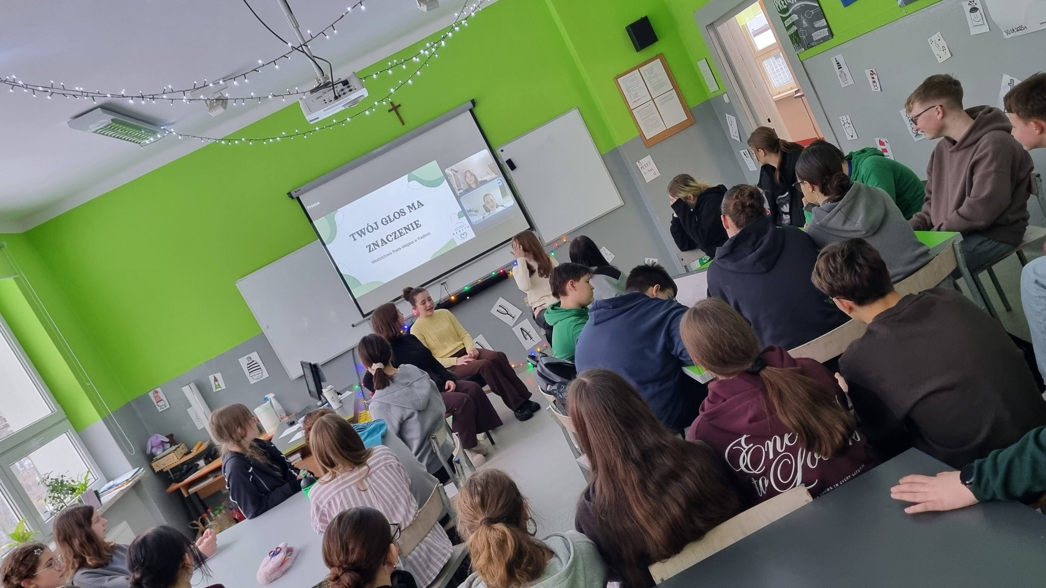 Opowiedziały uczniom o swoich działaniach i inicjatywach oraz przybliżyły, na czym polega praca w MRM. Poinformowały również, że kadencja obecnej Młodzieżowej Rady Miasta dobiega końca, dlatego szczególnie zachęcały uczniów do kandydowania do MRM i aktywnego włączania się w życie lokalnej społeczności.