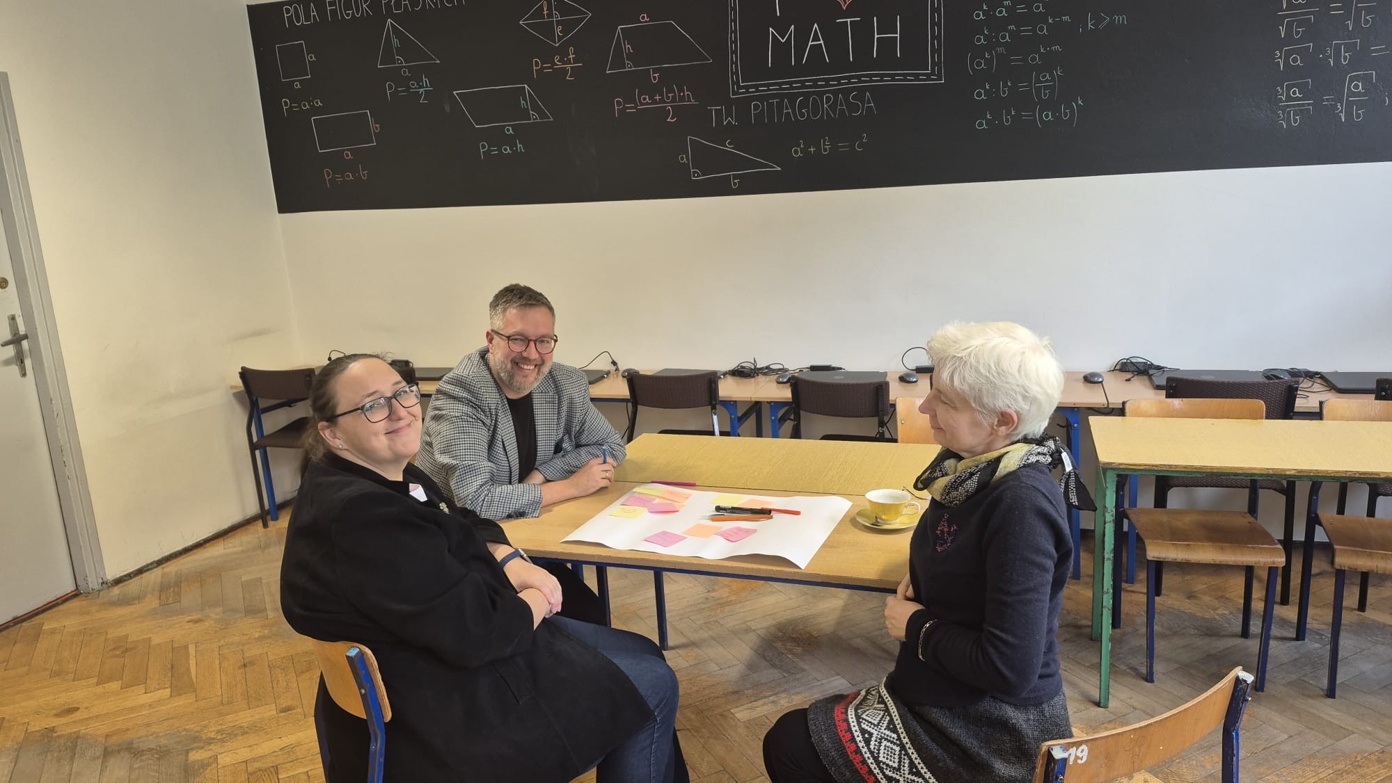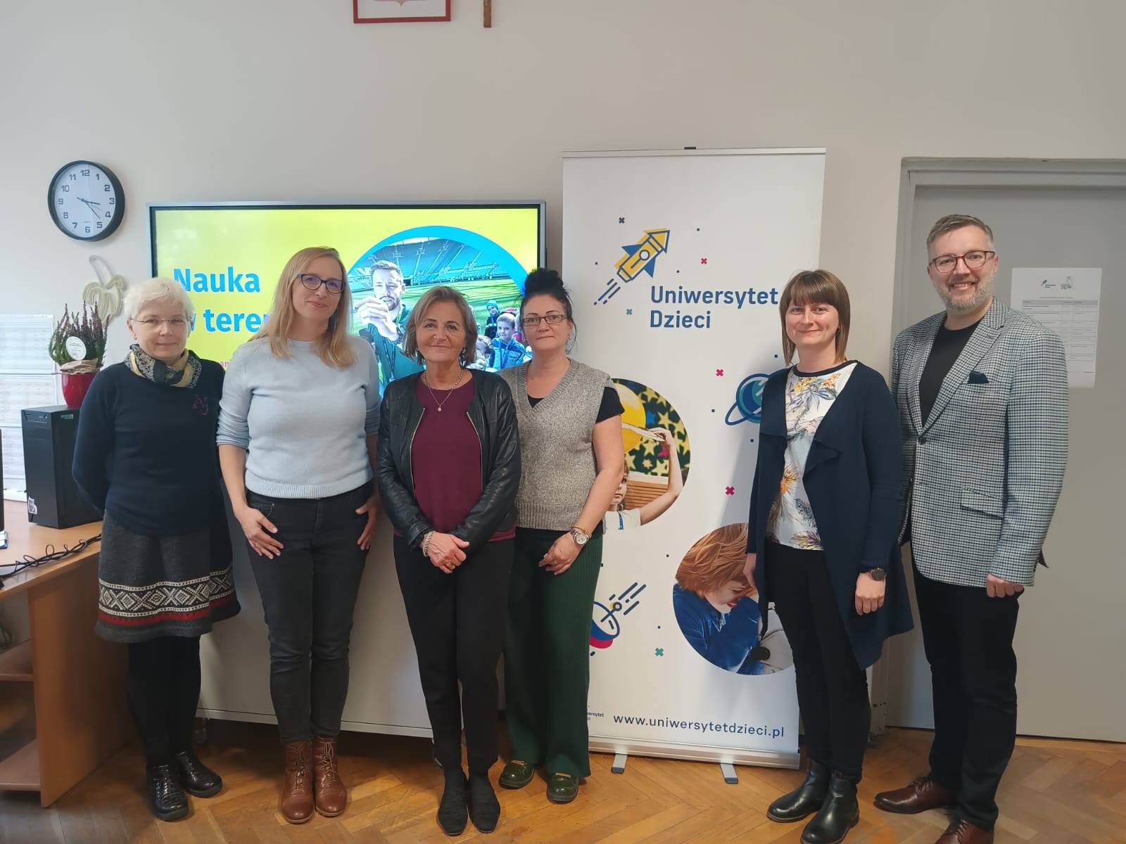 Za nami kolejna wizyta studyjna dyrektorów i nauczycieli w ramach współpracy z Fundacją Uniwersytet Dzieci. Goście uczestniczyli w dwóch lekcjach otwartych - międzyprzedmiotowej z chemii, fizyki i matematyki poprowadzonej przez p. dyrektora Jarosława Piszczana oraz międzyprzedmiotowej z geografii i języka angielskiego poprowadzonej przez p. Monikę Szulik. Odbył się także spacer edukacyjny po naszej szkole i warsztaty z design thinking poprowadzone przez p. Agnieszkę Kulas-Klepacką z Uniwersytetu Dzieci. Nasza leśna szkoła podbiła naszych gości.