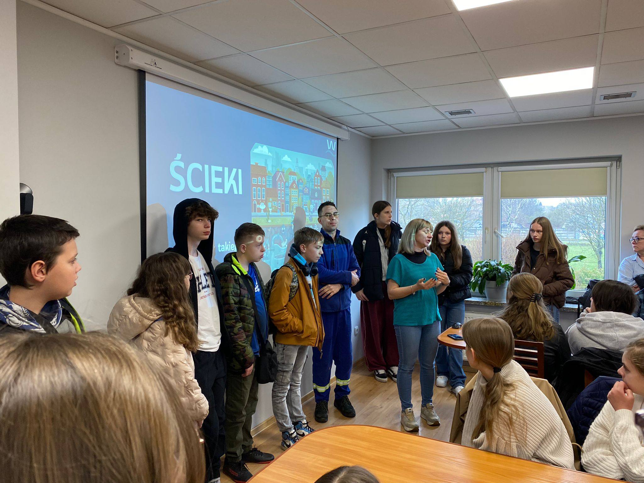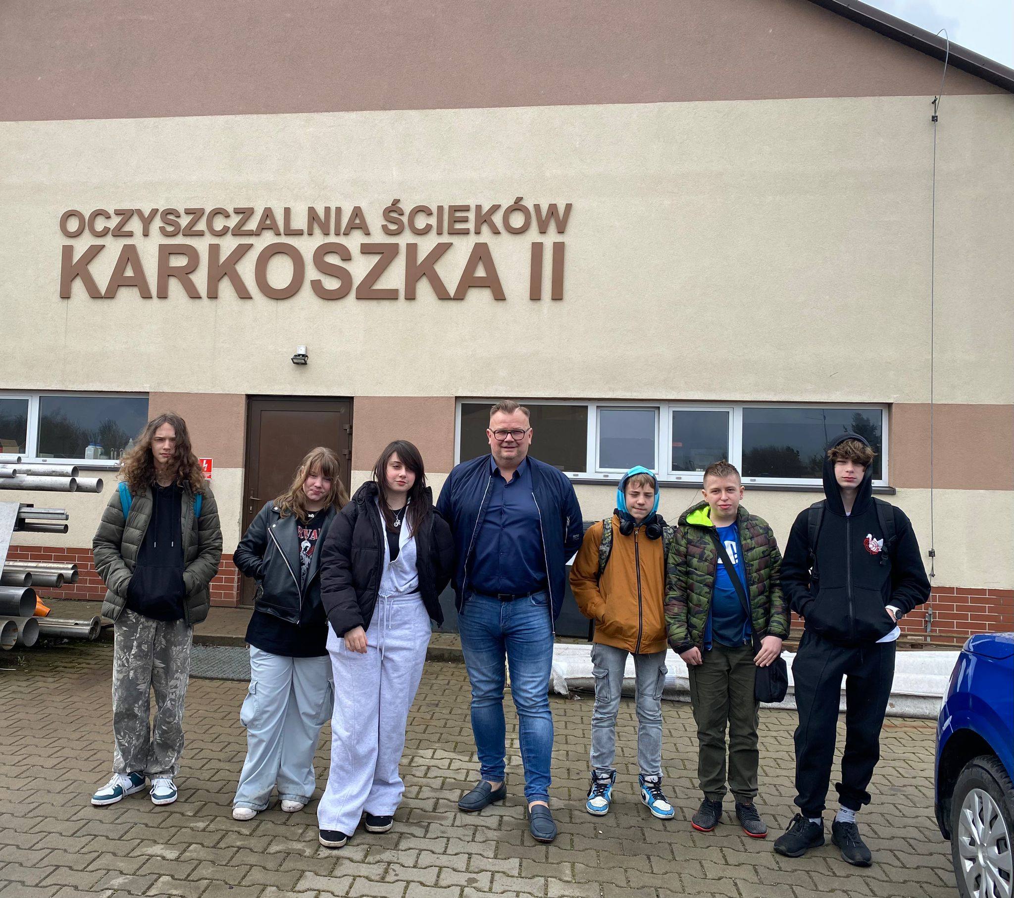 Na terenie Oczyszczalni Ścieków Karkoszka II, odbyły się dzisiaj pierwsze zajęcia projektowe pt. „Woda pod lupą - czysta „ Projekt jest organizowany przez PODN w Wodzisławiu Śląskim. Naszym uczniom towarzyszyli koledzy z zaprzyjaźnionej czwórki z Wodzisławia.